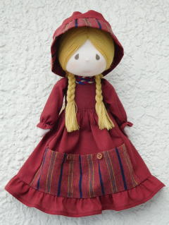 | ★一日公開講座のご案内(横浜・福岡) 公開講座としてはめずらしく、頭芯のパッキング詰めからご指導させていただきます。 顔の綿付け、髪、顔の仕上げなど、人形作りの主なポイントを一日で学ぶ講座です。 *洋服の作り方、着せ付けは説明のみ ポケットさん(大きさ約27p)はスカート部分が小物入れにもなる壁掛け人形です。 |